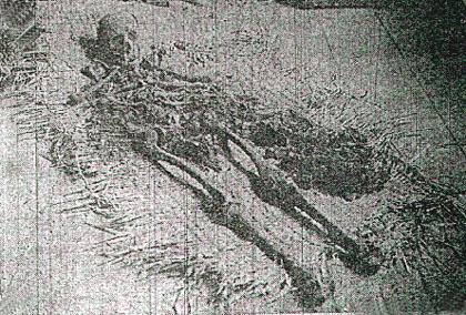 - また、最後の四人目のものは、仰臥して先に発見された三個のものより遙かに完全なものであり、頭部に数十個の銃弾が貫通していた。