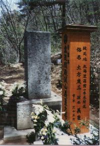 勇の墓の隣に近年(10年ほど前)歳三の碑が並んで建てられた。